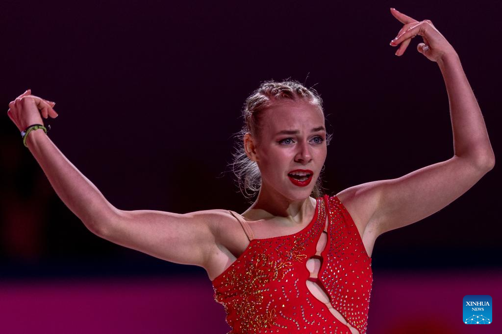 Niina Petrokina of Estonia performs during the gala exhibition of the Cup of China ISU Grand Prix of Figure Skating 2023 in southwest China's Chongqing Municipality, Nov. 12, 2023. (Xinhua/Chu Jiayin)