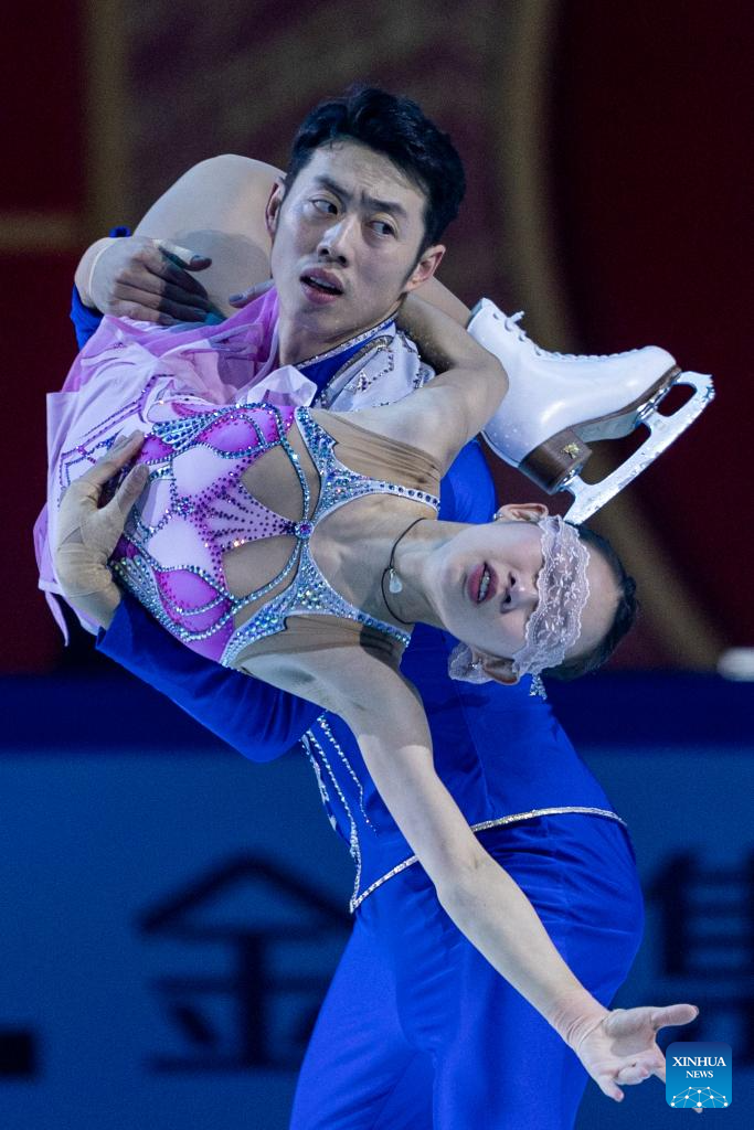 Peng Cheng (front) /Wang Lei of China perform during the gala exhibition of the Cup of China ISU Grand Prix of Figure Skating 2023 in southwest China's Chongqing Municipality, Nov. 12, 2023. (Xinhua/Chu Jiayin)