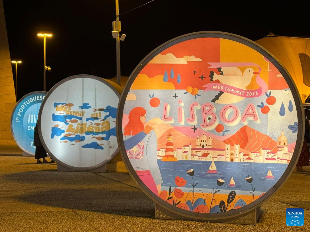 This photo taken on Nov. 13, 2023 shows installations featuring the Web Summit 2023 in Lisbon, Portugal.