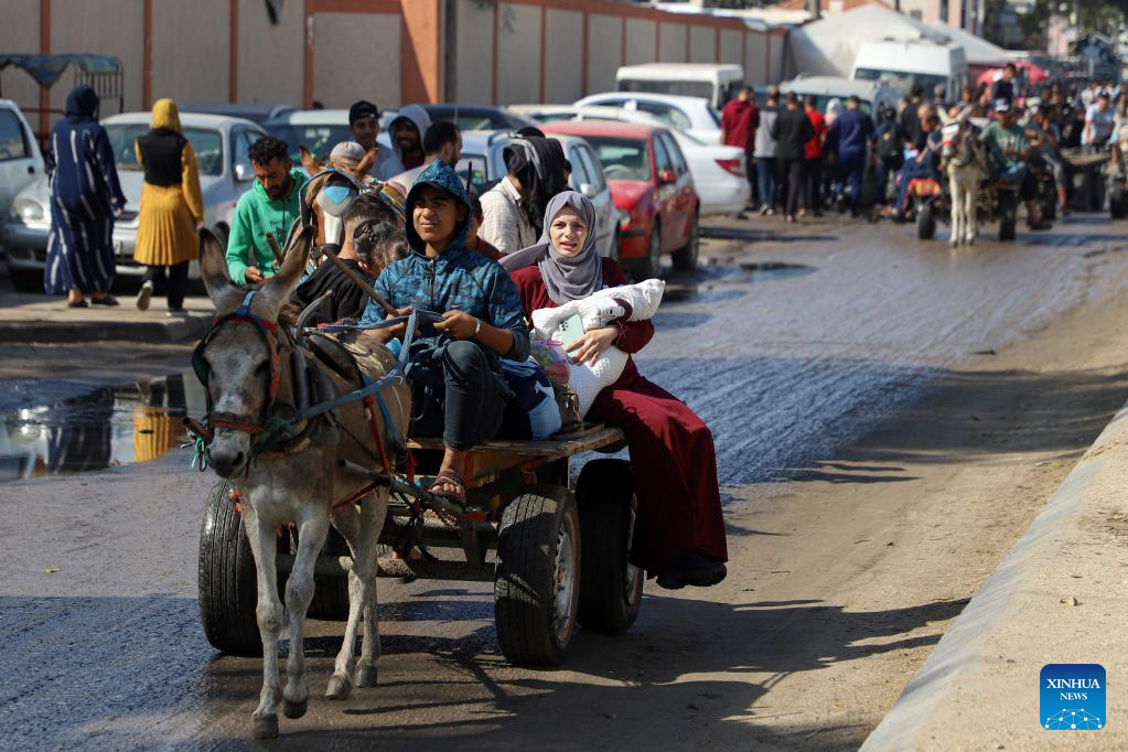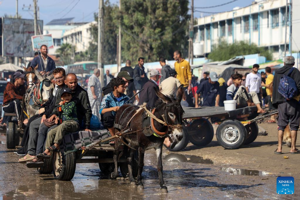People take donkey-drawn carts in the southern Gaza Strip city of Khan Younis on Nov. 14, 2023. (Photo by Rizek Abdeljawad/Xinhua)