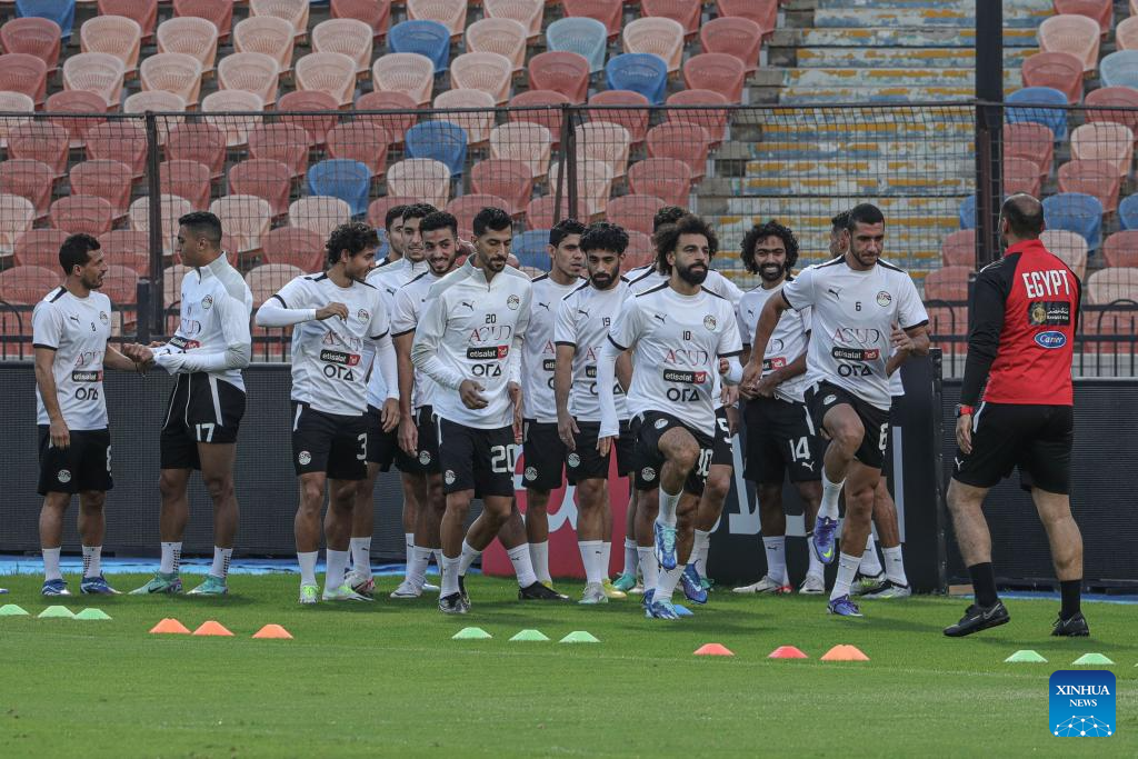 Egypt's national football team players attend a training session for the 2026 FIFA World Cup qualification in Cairo, Egypt, Nov. 15, 2023. (Xinhua/Ahmed Gomaa)