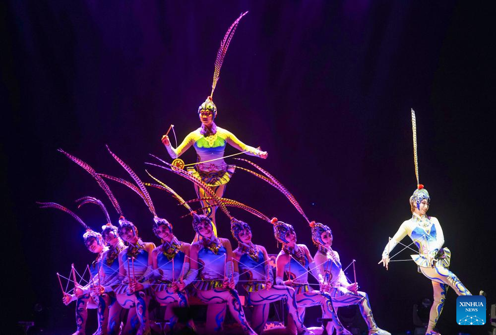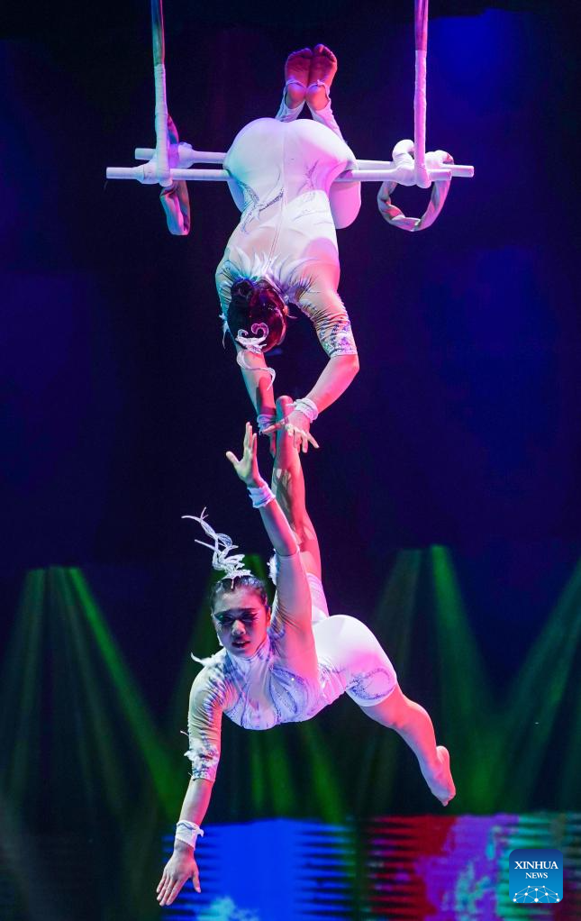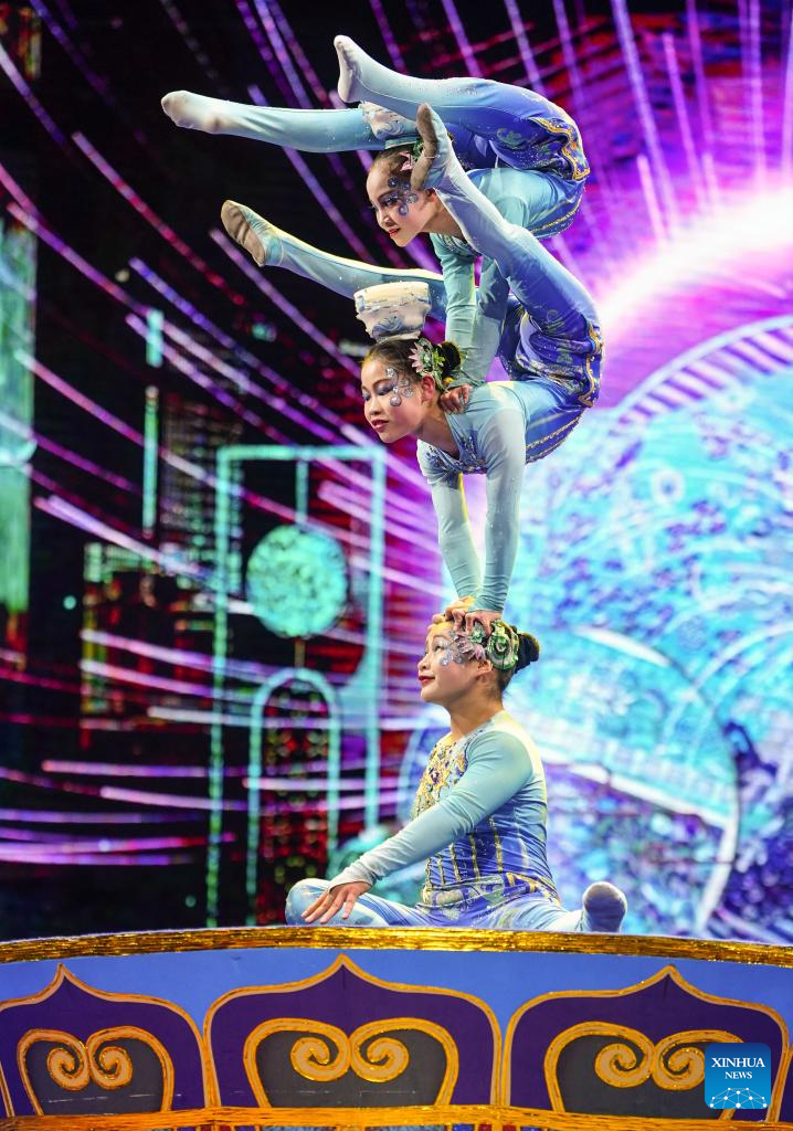 Actors perform during an acrobatic show in Beijing, capital of China, Nov. 17, 2023. A two-day acrobatic show kicked off in Beijing on Saturday. Eleven acrobatic art performing groups across the country bring 12 programs to the show. (Xinhua/Chen Yehua)
