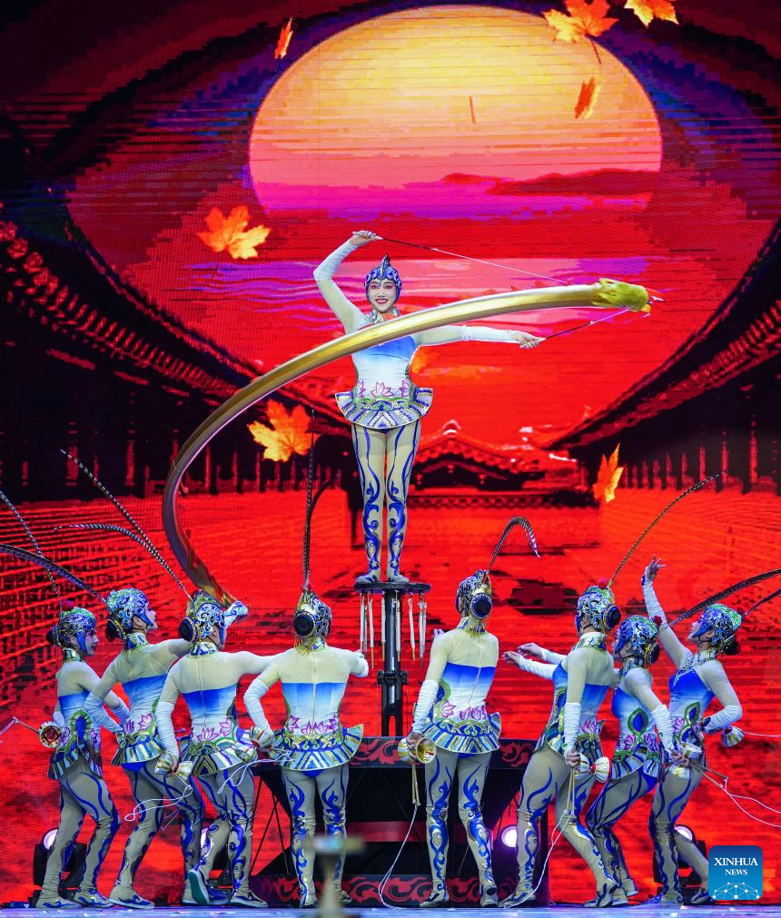 An actress performs during an acrobatic show in Beijing, capital of China, Nov. 17, 2023. A two-day acrobatic show kicked off in Beijing on Saturday. Eleven acrobatic art performing groups across the country bring 12 programs to the show. (Xinhua/Chen Yehua)