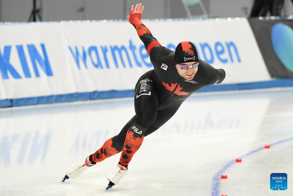 Laurent Dubreuil of Canada competes during the 2nd 500m Men Division A on the Day 2 of ISU World Cup Speed Skating at National Speed Skating Oval in Beijing, capital of China, Nov. 18, 2023. (Xinhua/Ju Huanzong)