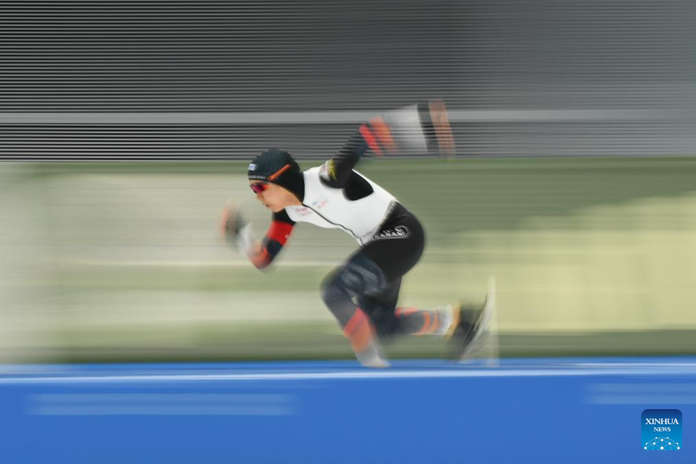 Takagi Miho of Japan competes during the 1000m Women Division A on the Day 2 of ISU World Cup Speed Skating at National Speed Skating Oval in Beijing, capital of China, Nov. 18, 2023. (Xinhua/Ju Huanzong)
