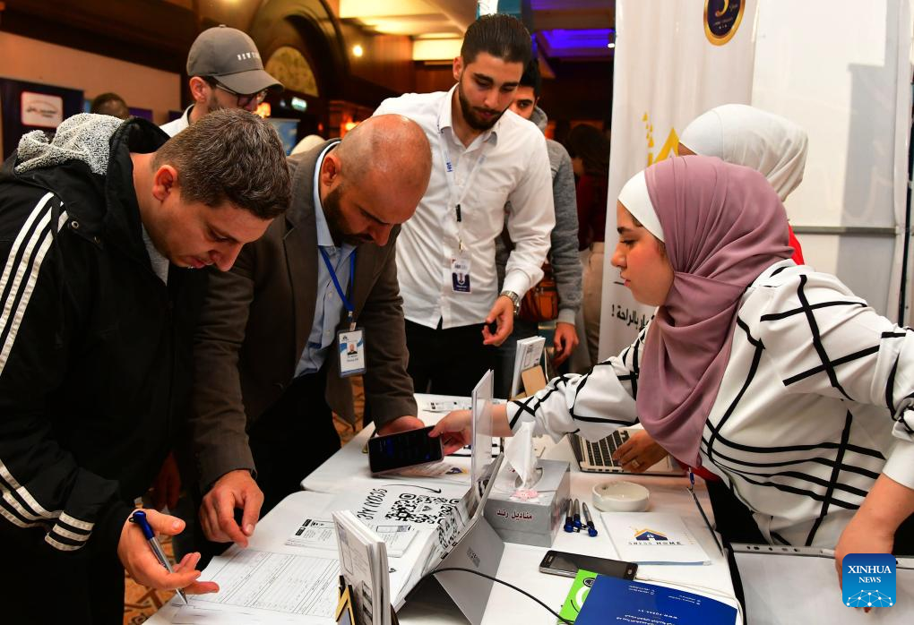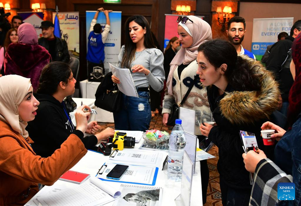 People attend an exhibition for companies offering job opportunities in Damascus, Syria, Nov. 19, 2023. (Photo by Ammar Safarjalani/Xinhua)