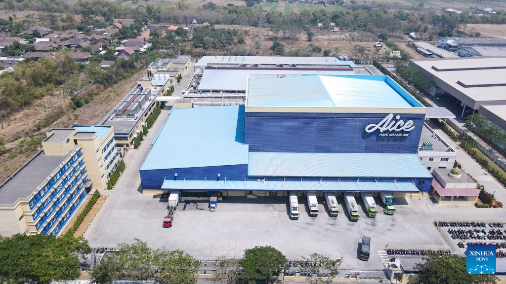 This aerial photo taken on Sept. 15, 2023 shows an Aice factory in Mojokerto, East Java, Indonesia. Living in the tropics, the Indonesian people swelter through the scorching weather. Aice, a famous ice cream brand in the country, cools them down and brings joy. (Xinhua/Xu Qin)