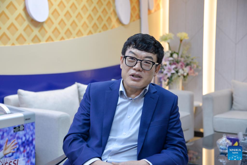 Wang Jiacheng, chief executive officer of Aice Group, speaks to Xinhua during an interview in Jakarta, Indonesia, Sept. 19, 2023. Living in the tropics, the Indonesian people swelter through the scorching weather. Aice, a famous ice cream brand in the country, cools them down and brings joy.(Xinhua/Xu Qin)