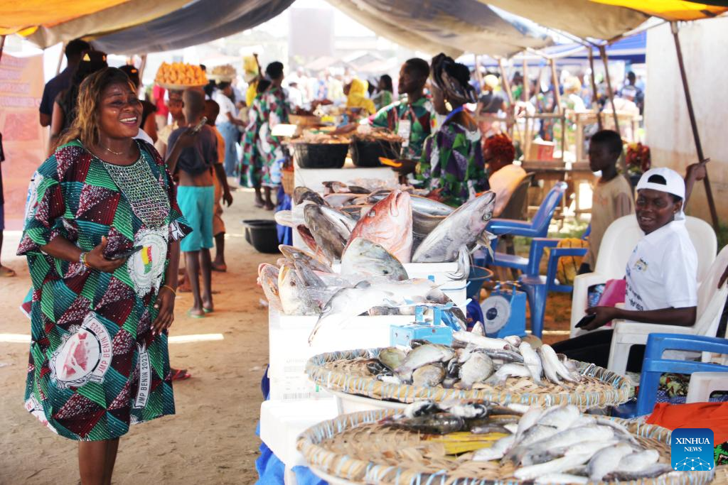 Fresh fish are displayed on the occasion of World Fisheries Day in So-Ava, a lakeside town near Cotonou, Benin, on Nov. 21, 2023. (Photo by Seraphin Zounyekpe/Xinhua)