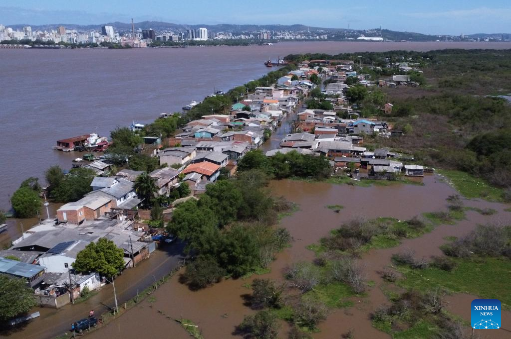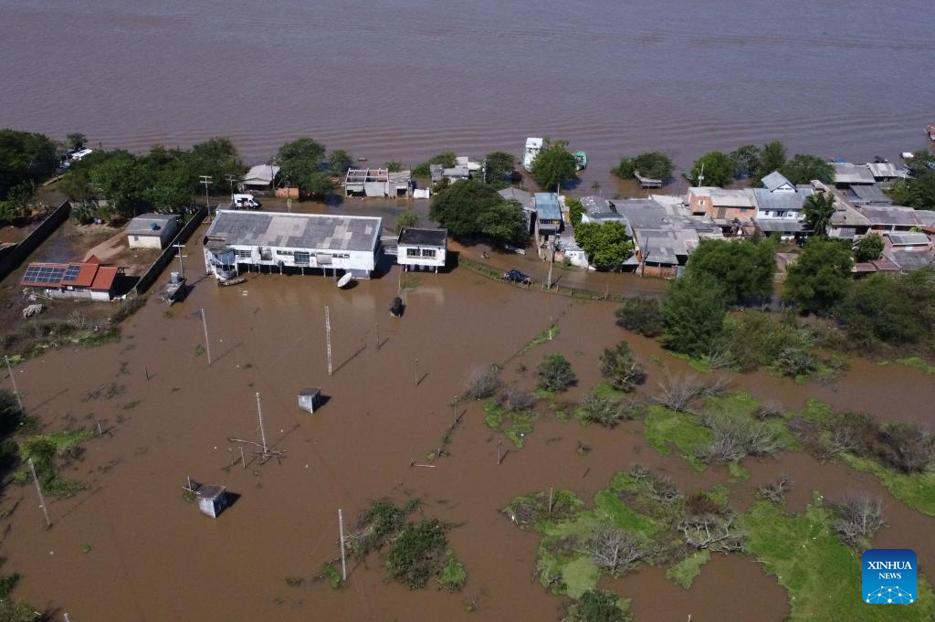 This aerial photo taken on Nov. 23, 2023 shows the flooded streets in Rio Grande do Sul, Brazil. (Photo by Lucio Tavora/Xinhua)