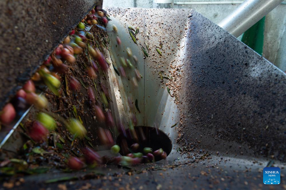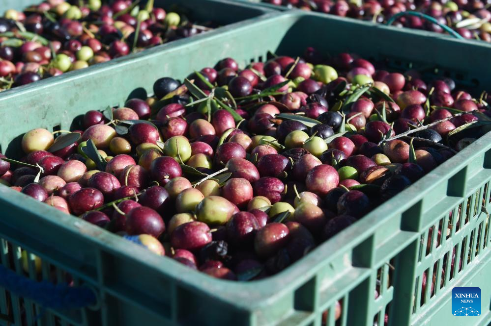 This photo taken on Nov. 24, 2023 shows newly harvested olives in Caceres, Spain. Spain is one of the largest olive oil producers in the world. However, heat waves and droughts this year have slashed the country's olive output, which in turn pushed up the price of olive oil products on the market. (Photo by Gustavo Valiente/Xinhua)