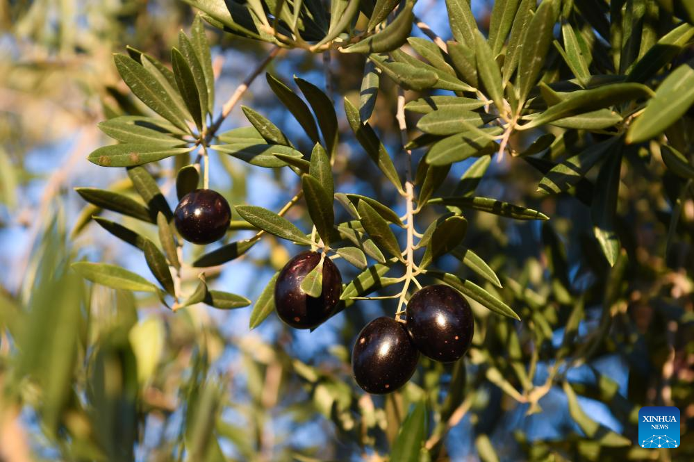 This photo taken on Nov. 24, 2023 shows olives growing in Caceres, Spain. Spain is one of the largest olive oil producers in the world. However, heat waves and droughts this year have slashed the country's olive output, which in turn pushed up the price of olive oil products on the market. (Photo by Gustavo Valiente/Xinhua)
