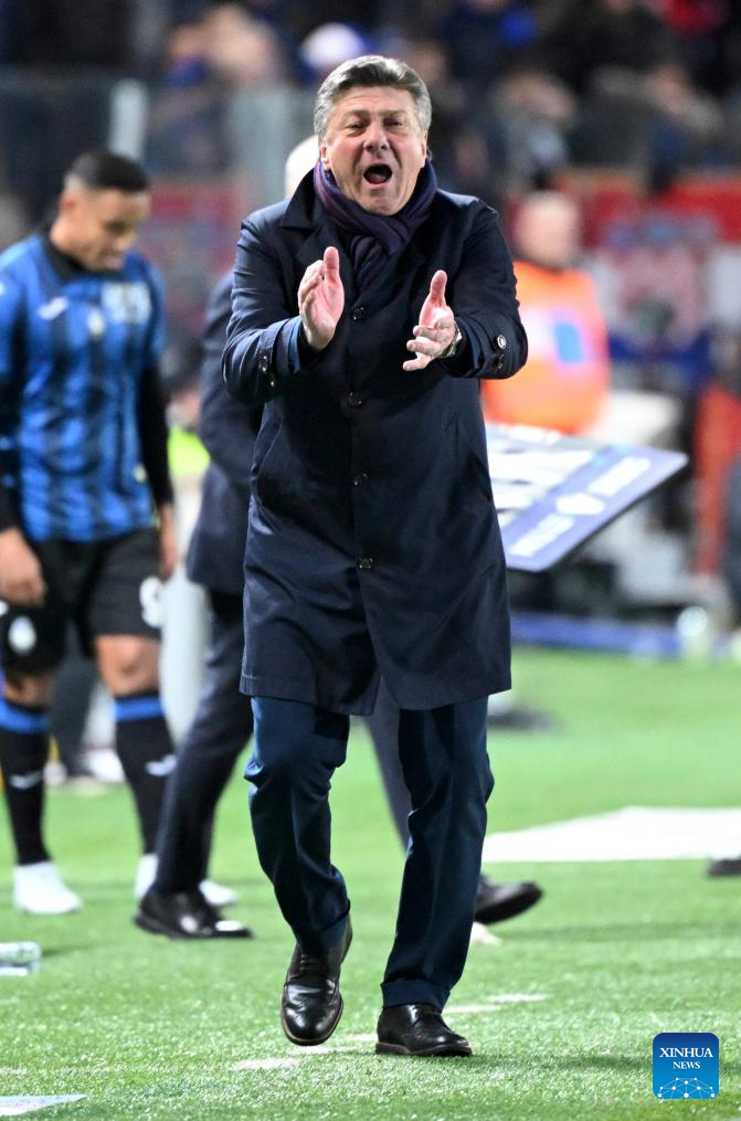Napoli's head coach Walter Mazzarri reacts during a Serie A football match between Atalanta and Napoli in Bergamo, Italy, Nov. 25, 2023. (Photo by Augusto Casasoli/Xinhua)