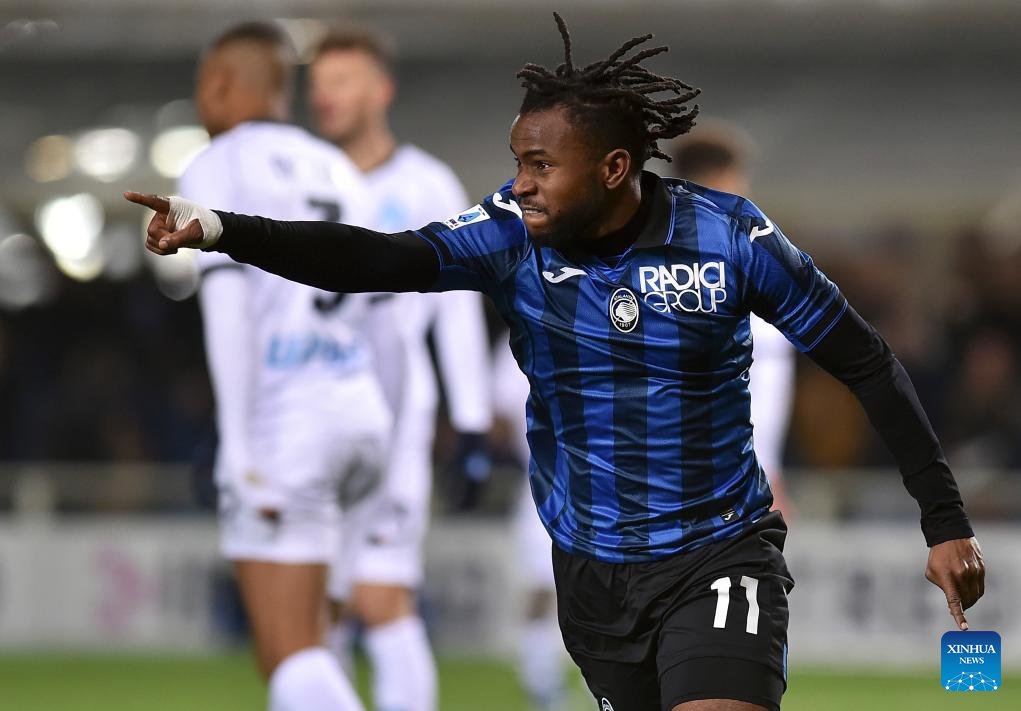 Atalanta's Ademola Lookman celebrates his goal during a Serie A football match between Atalanta and Napoli in Bergamo, Italy, Nov. 25, 2023. (Photo by Augusto Casasoli/Xinhua)