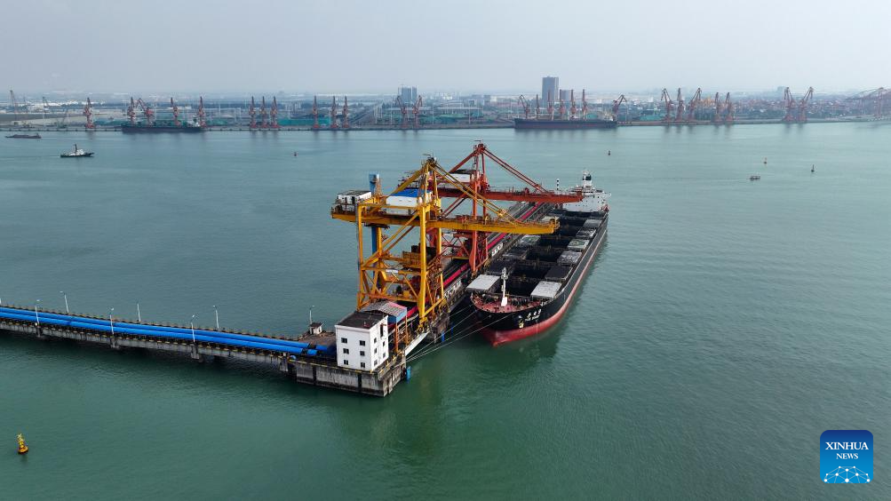 This aerial photo taken on Nov, 24, 2023 shows the coal wharf of Qinzhou Port in Qinzhou City, south China's Guangxi Zhuang Autonomous Region.