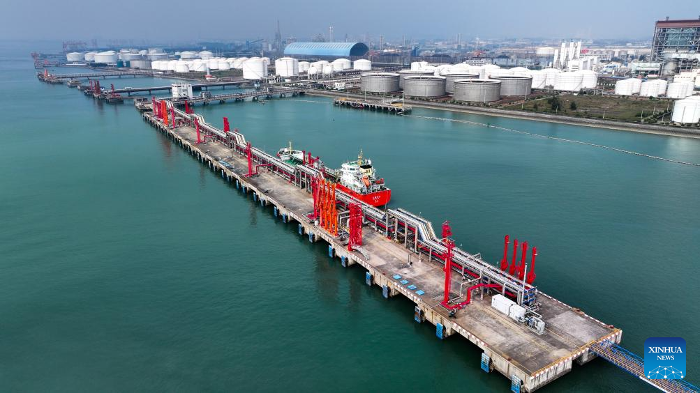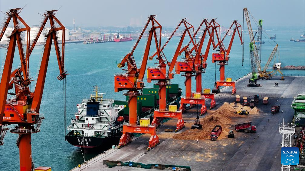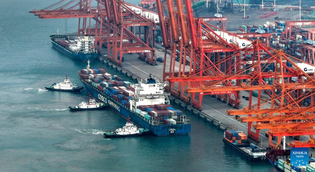 This aerial photo taken on Nov, 24, 2023 shows a wharf at Qinzhou Port in Qinzhou City, south China's Guangxi Zhuang Autonomous Region.