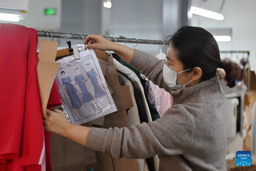 A staff worker of Laomeihua looks at a design sheet at the workshop in north China's Tianjin, Dec. 8, 2023. Created in 1911, Laomeihua is a century-old brand famous for its handmade shoes and clothes. In recent years, besides focusing on products for the middle-aged and elderly people, Laomeihua has also cultivated "trendy products" and started livestreaming to cater to the young generation. (Xinhua/Li Ran)