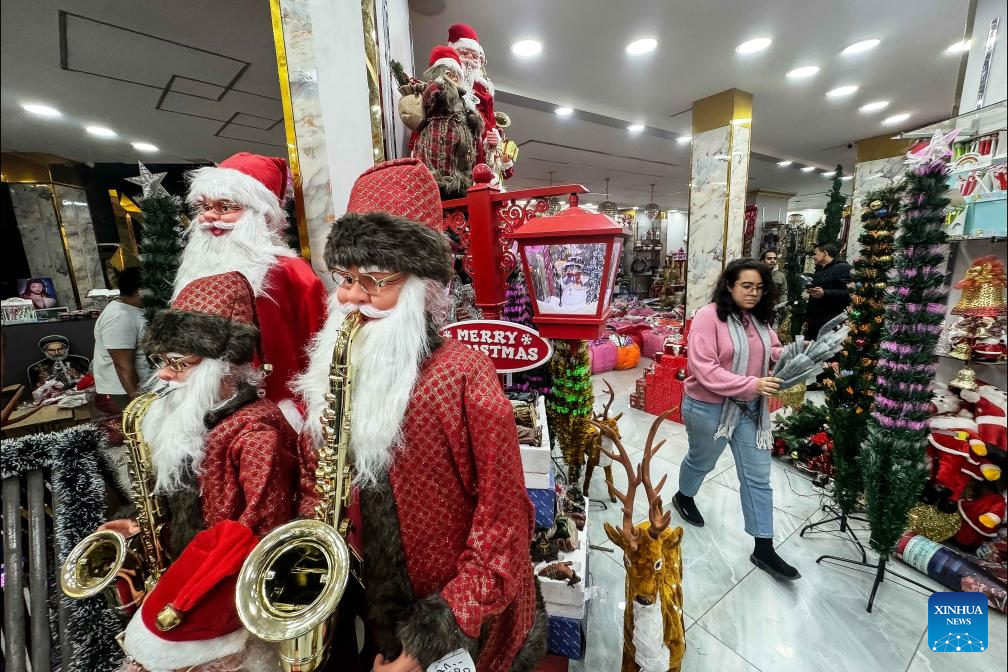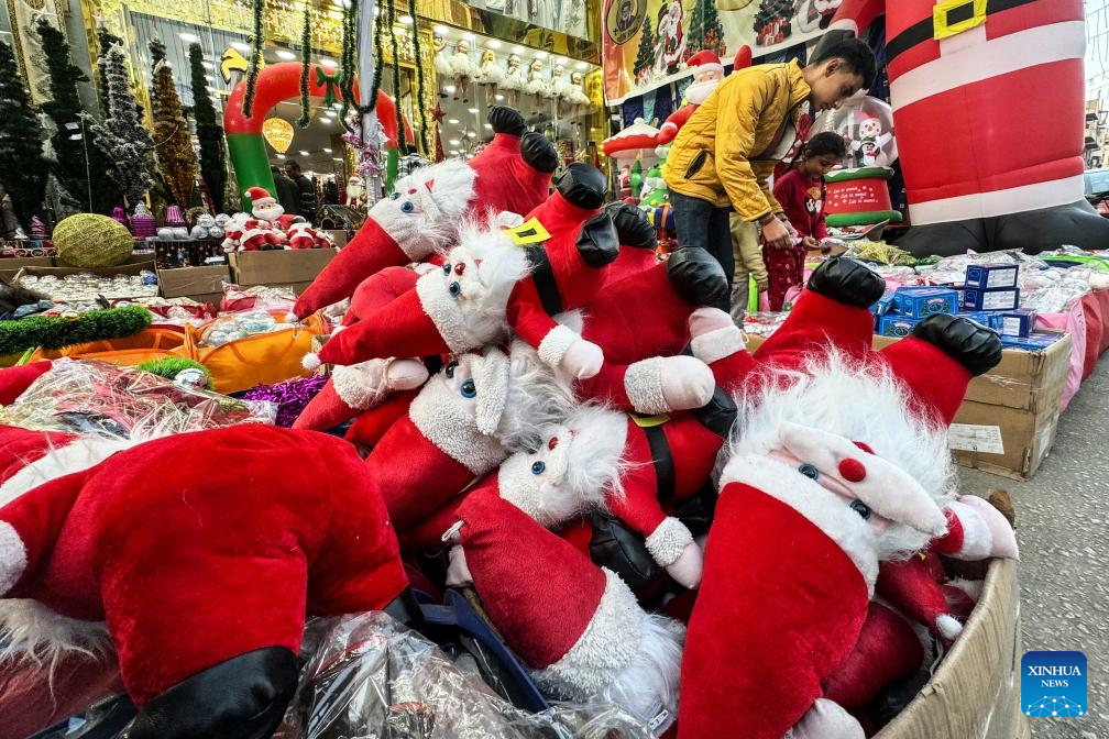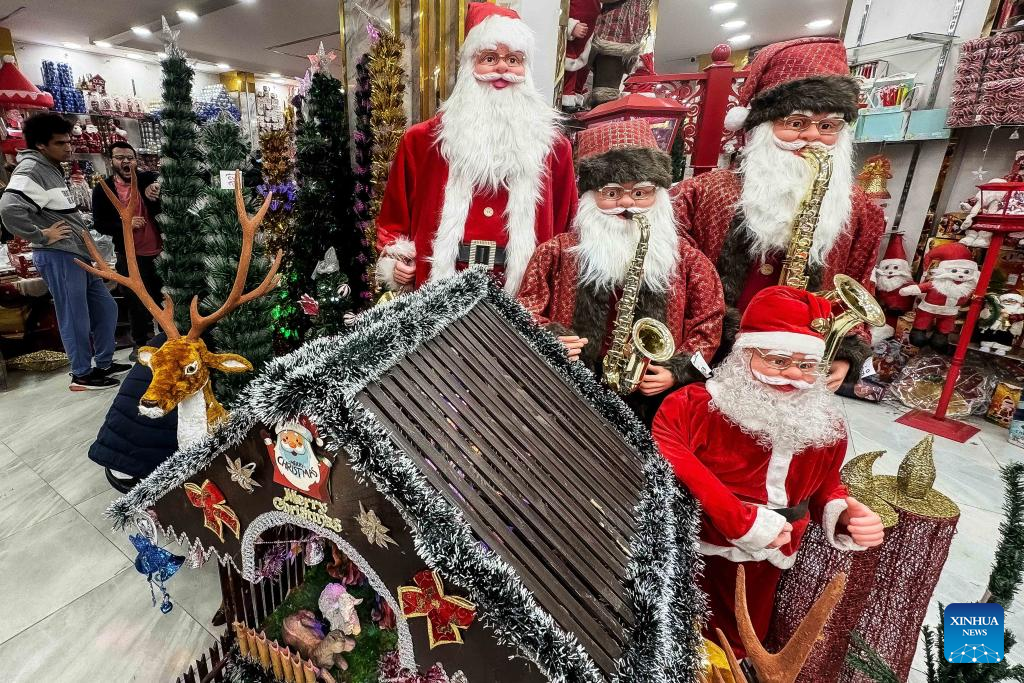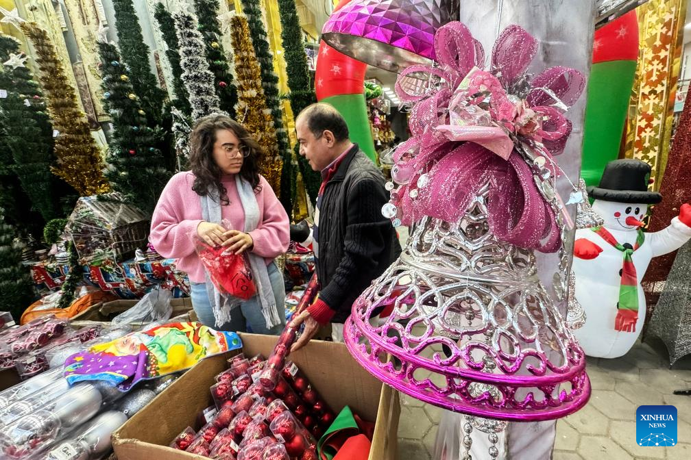 People buy Christmas decorations at a market in Cairo, Egypt, on Dec. 21, 2023. (Xinhua/Ahmed Gomaa)