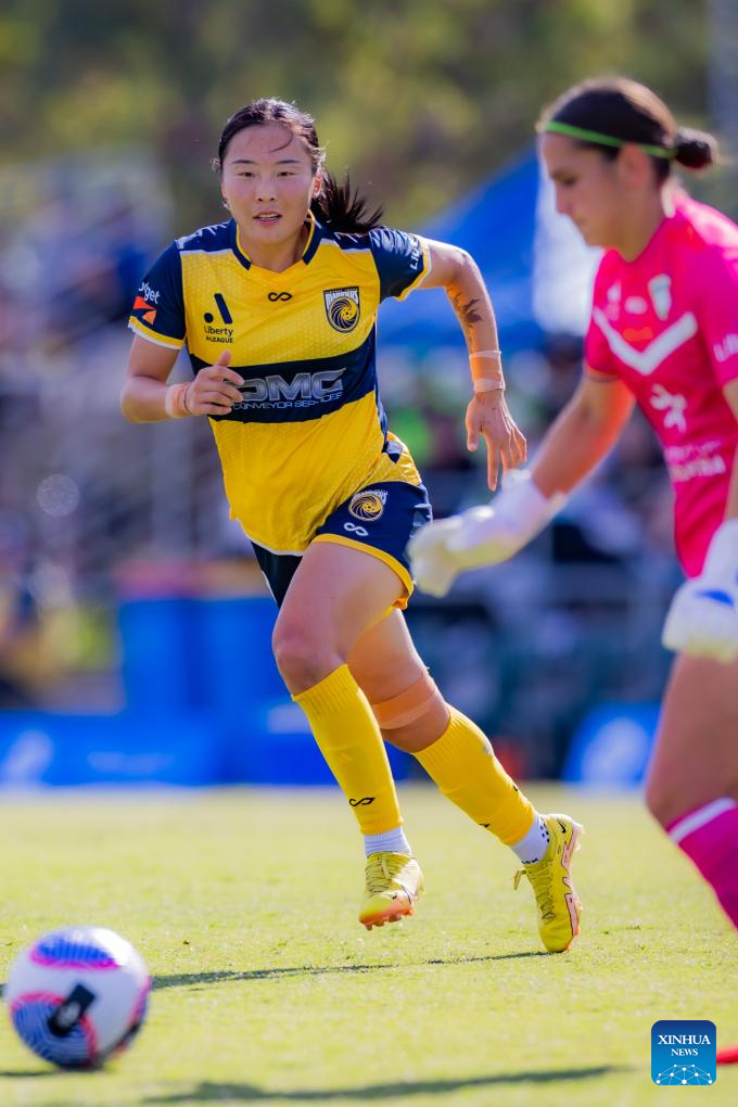 Chinese football player Wurigumula of Central Coast Mariners competes during the 2023-2024 season A-League Women 9th round match between Canberra United and Central Coast Mariners in Canberra, Australia, Dec. 23, 2023. (Photo by Chu Chen/Xinhua)