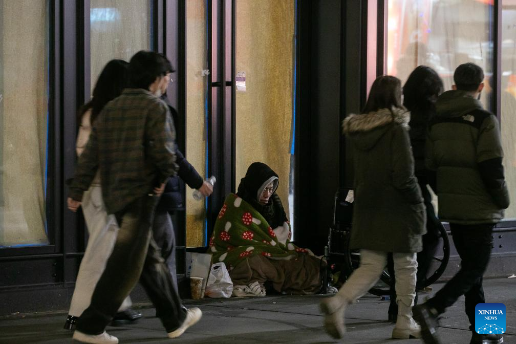 A homeless man is pictured in New York, the United States, Dec. 23, 2023. The number of homeless people in the United States has increased by 12 percent to a record high, showed a government report on Dec. 15. (Photo by Michael Nagle/Xinhua)