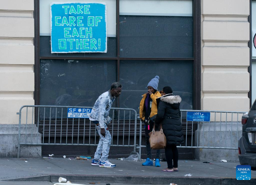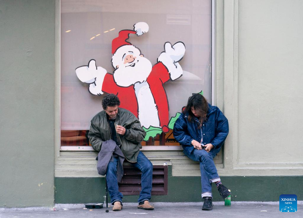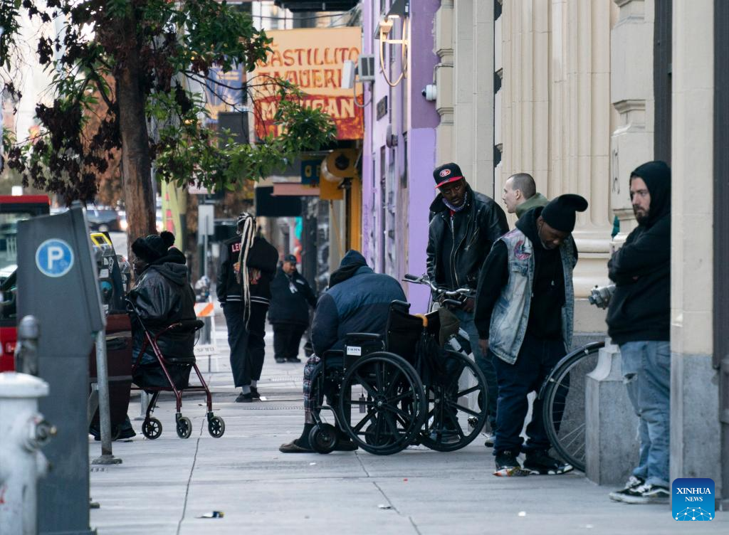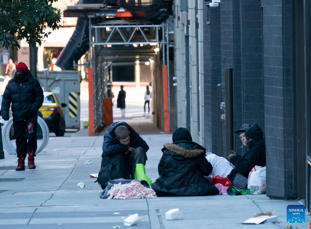 Homeless people are pictured in San Francisco, California, the United States, Dec. 23, 2023. The number of homeless people in the United States has increased by 12 percent to a record high, showed a government report on Dec. 15. (Photo by Li Jianguo/Xinhua)