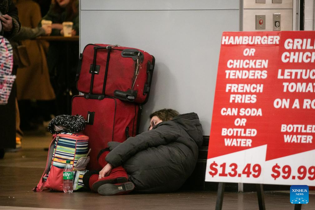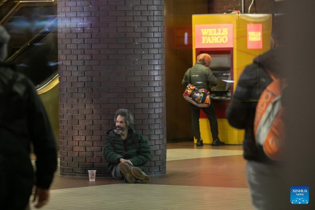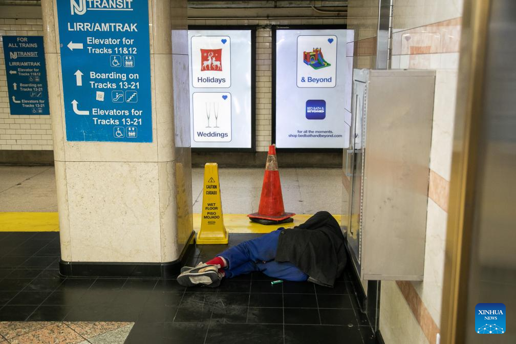 A homeless person is pictured at a subway station in New York, the United States, Dec. 23, 2023. The number of homeless people in the United States has increased by 12 percent to a record high, showed a government report on Dec. 15. (Photo by Michael Nagle/Xinhua)