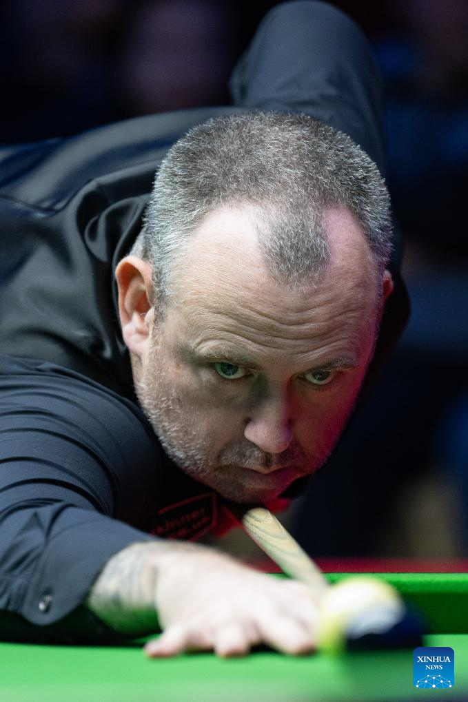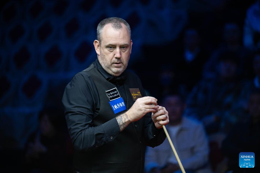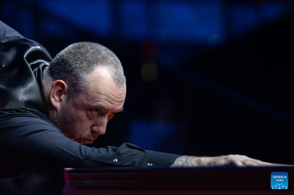 Mark Williams of Wales competes during the group A quarter finals against Si Jiahui of China at the 2023 Macau Snooker Masters in Macau, south China, Dec. 26, 2023. (Xinhua/Cheong Kam Ka)