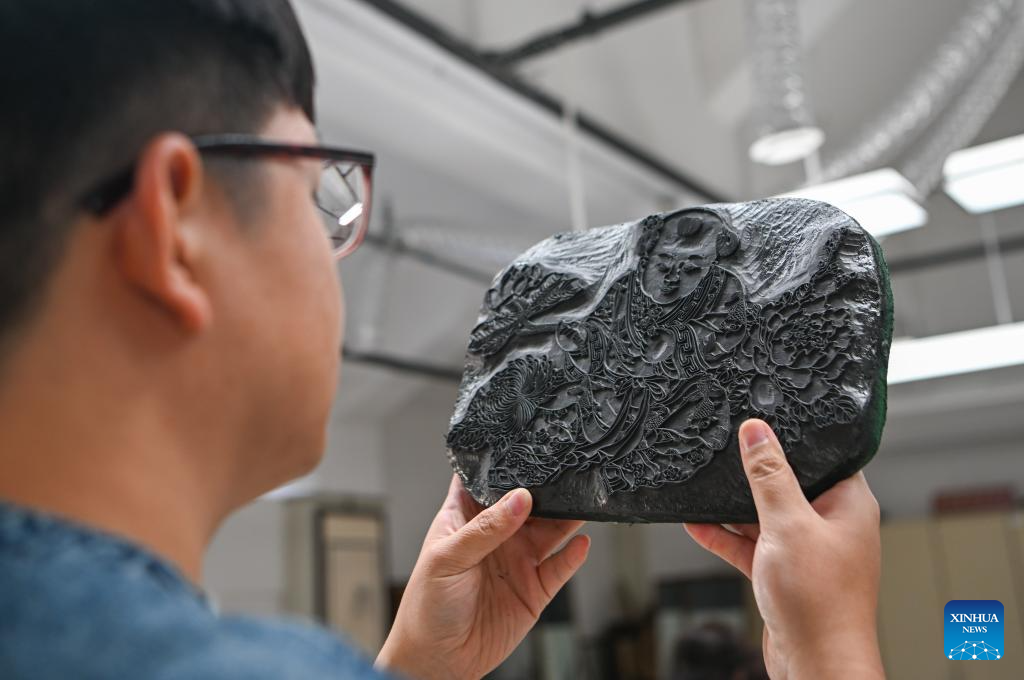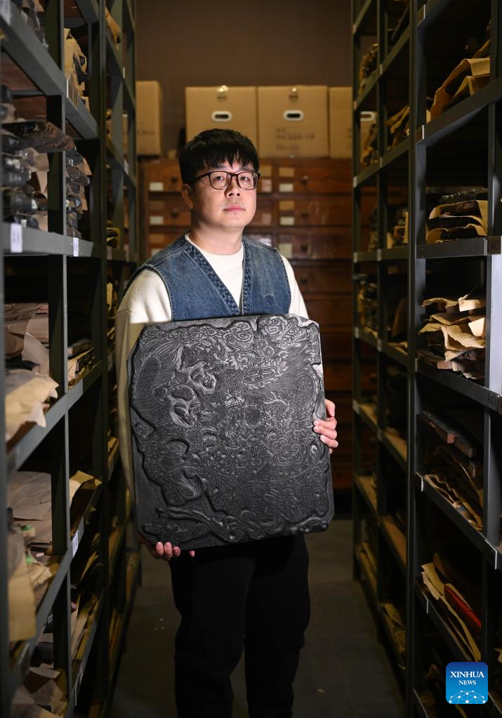 Unlike wielding a painting brush, it is far harder to manipulate a sculpting knife to leave aesthetic patterns on a woodblock. Having done the work for about a decade, Xi deems it an art of time, adding that only consecutive work can keep his hands proficient. One of the accomplishments that Xi is proud of in 2023 is his successful duplication of six sets of ancient woodblocks passed down from the Ming and Qing (1368-1911) dynasties. (Xinhua/Li Ran)