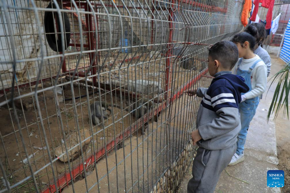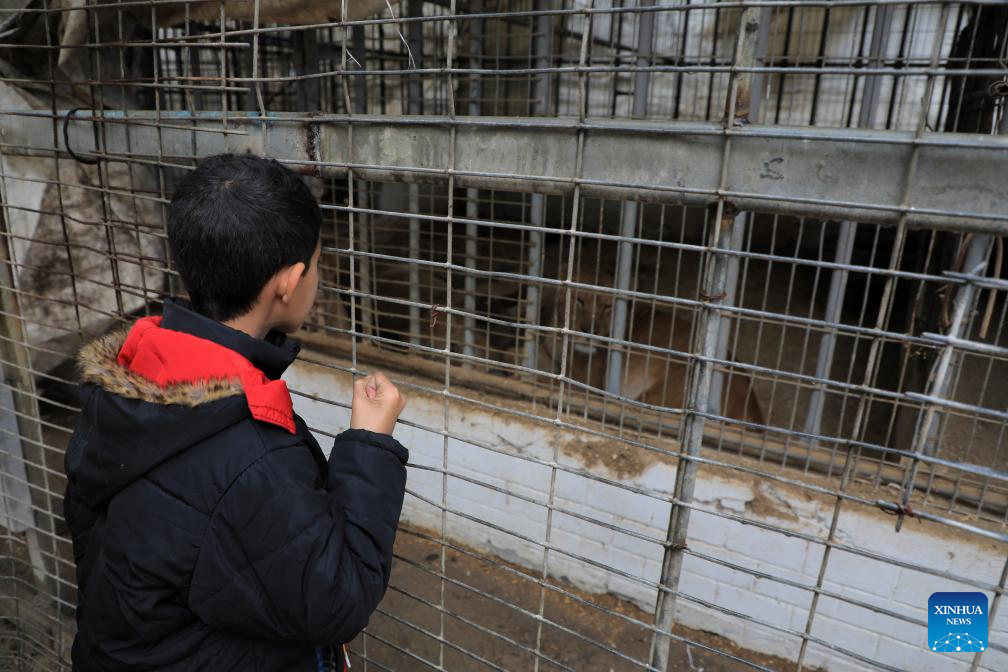 Children visit a private zoo in the southern Gaza Strip city of Rafah, Jan. 2, 2024. Animals at the zoo are suffering from food shortage due to the Israel-Hamas conflict. (Photo by Rizek Abdeljawad/Xinhua)