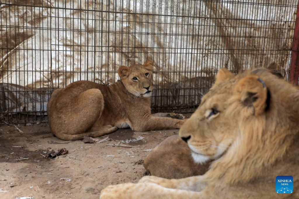 Lions are pictured at a private zoo in the southern Gaza Strip city of Rafah, Jan. 2, 2024. Animals at the zoo are suffering from food shortage due to the Israel-Hamas conflict. (Photo by Rizek Abdeljawad/Xinhua)