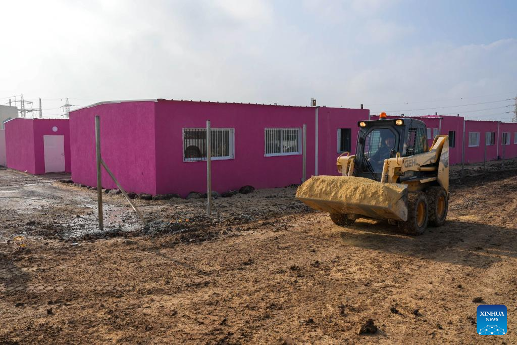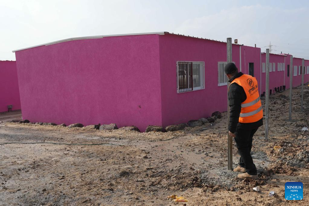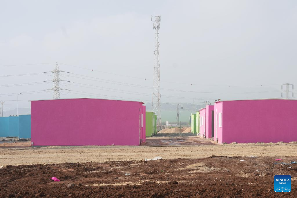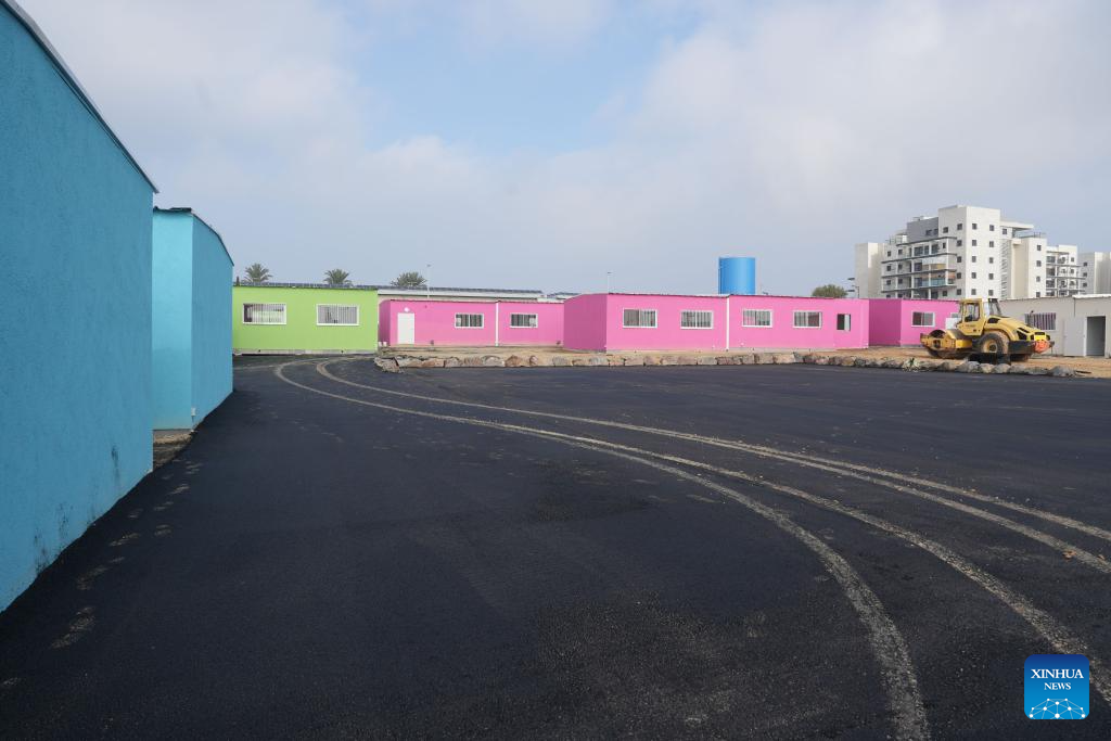 A temporary school is under construction in the northern Israeli city of Tiberias, Jan. 3, 2024. The school was built for the children of northern residents who were evacuated from their homes following the confrontations on the Lebanon-Israel borders. (Ayal Margolin/JINI via Xinhua)