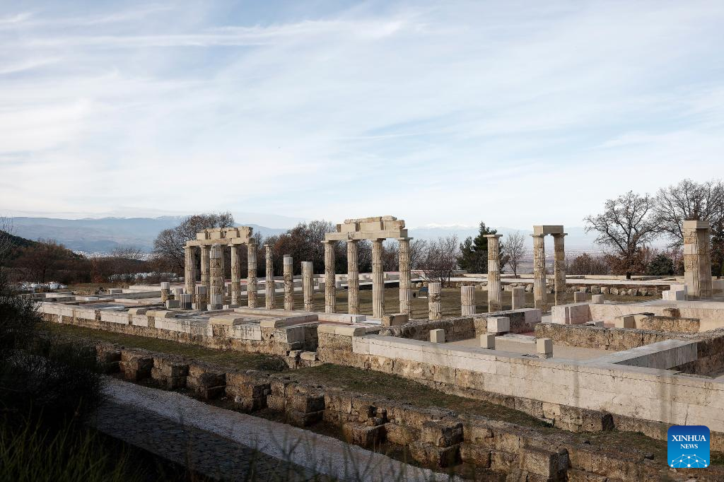 This photo taken on Jan. 5, 2024 shows a view of the site of a palace of the ancient kingdom of Macedonia at the archaeological site of Aigai in Vergina, Greece. (Photo by Dimitris Tosidis/Xinhua)