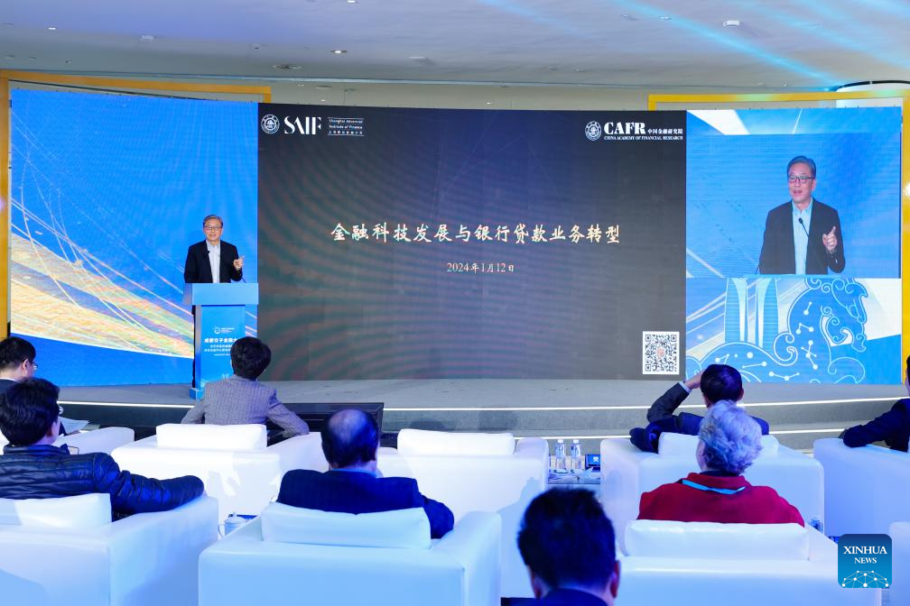 Guests attend the Chengdu Jiaozi Financial Conference in Chengdu, southwest China's Sichuan Province, Jan. 12, 2024. (Xinhua/Tang Wenhao)