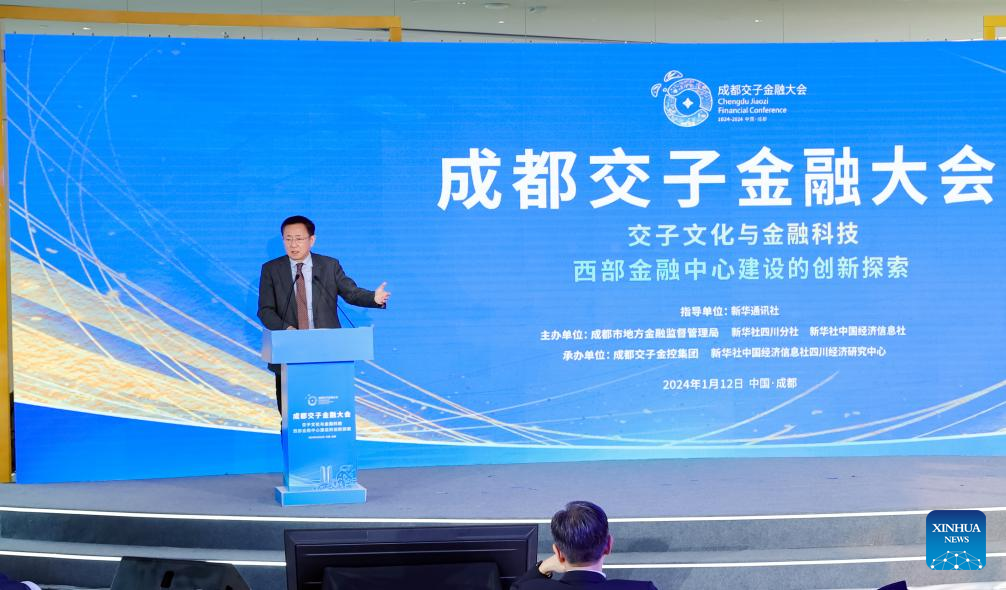 Tu Guangshao, chairman of the executive council of Shanghai Finance Institute, delivers a speech at the Chengdu Jiaozi Financial Conference in Chengdu, southwest China's Sichuan Province, Jan. 12, 2024. (Xinhua/Shen Bohan)