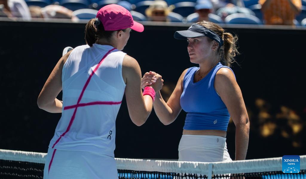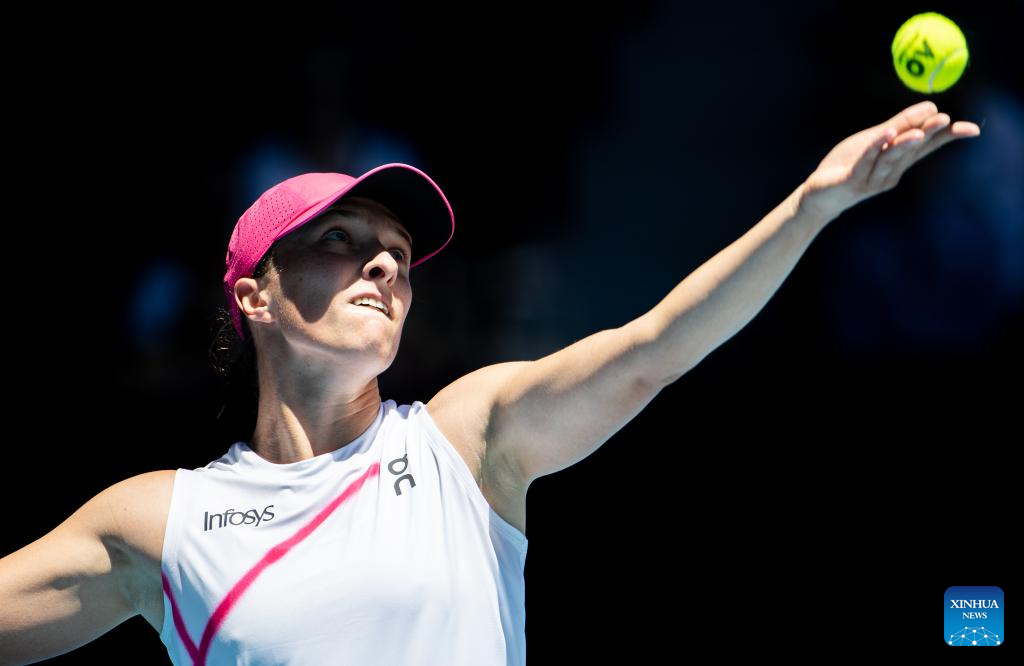 MELBOURNE, Australia, Jan. 16 (Xinhua) -- Australian Open title favorites Iga Swiatek and Carlos Alcaraz on Tuesday cruised to the second round after recording straight-sets victories.