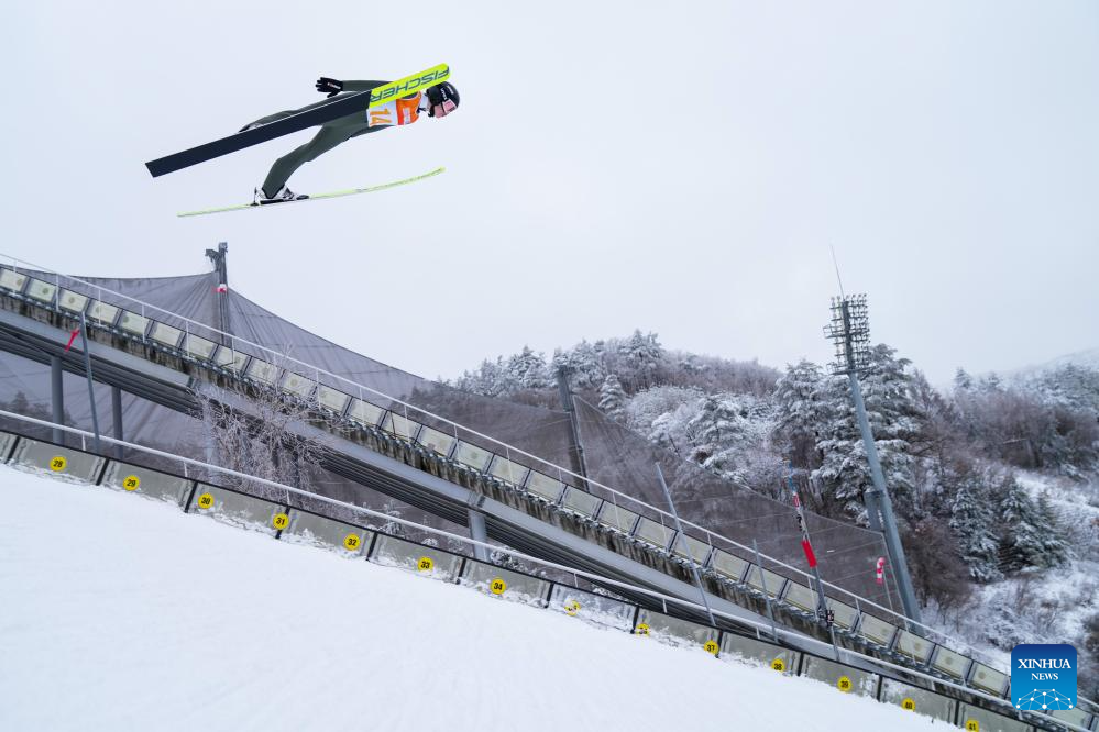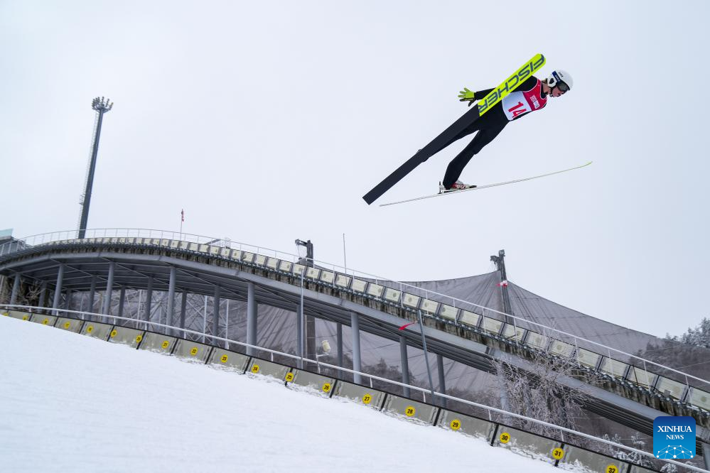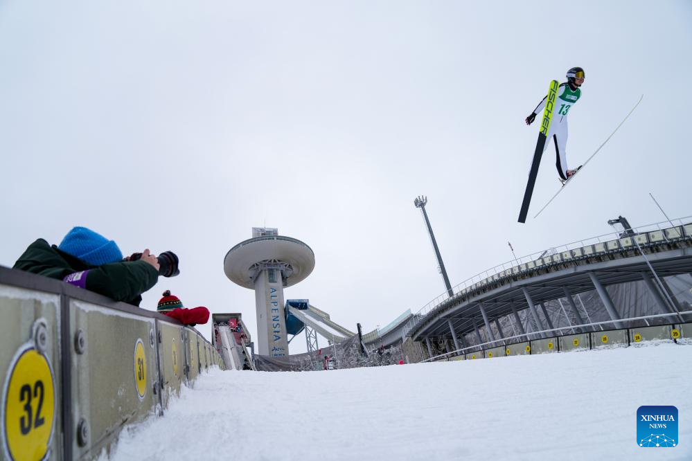 Urban Simnic of Slovenia competes during the Mixed Team of Ski Jumping event at the Gangwon 2024 Winter Youth Olympic Games in Pyeongchang, South Korea, Jan. 21, 2024. (Xinhua/Zhang Xiaoyu)