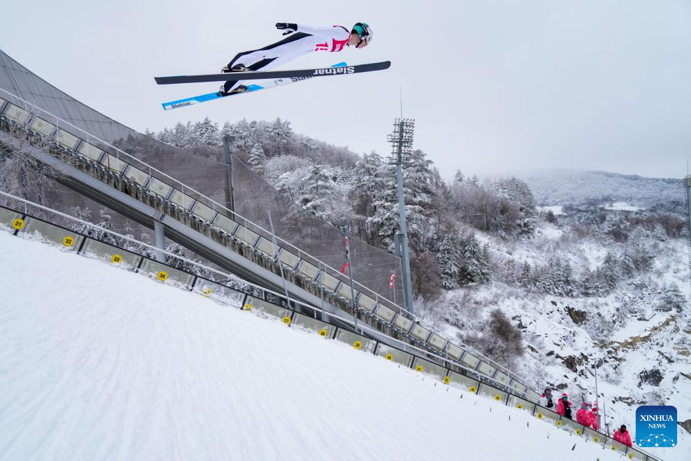 Midtskogen Is of Norway competes during the Mixed Team of Ski Jumping event at the Gangwon 2024 Winter Youth Olympic Games in Pyeongchang, South Korea, Jan. 21, 2024. (Xinhua/Zhang Xiaoyu)