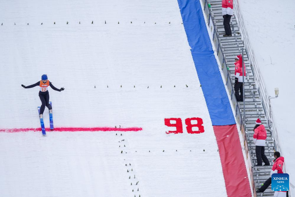 Sara Pokorny of Austria competes during the Mixed Team of Ski Jumping event at the Gangwon 2024 Winter Youth Olympic Games in Pyeongchang, South Korea, Jan. 21, 2024. (Xinhua/Zhang Xiaoyu)