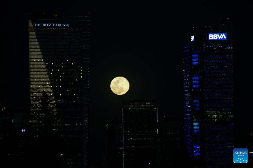 This photo taken on Jan. 25, 2024 shows full moon rising over Mexico City, Mexico. (Photo by Francisco Canedo/Xinhua)