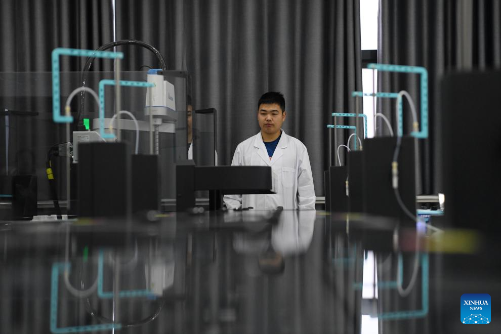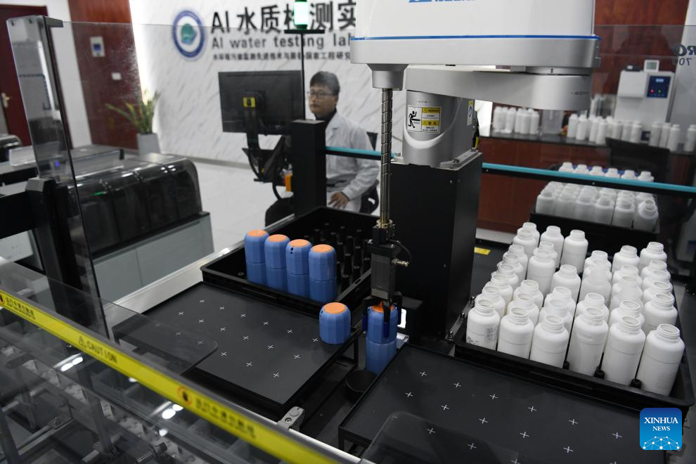 An automatic water testing system operates at Anhui CAS Intelligent Environmental Testing Technology Service Co., Ltd. in the China Environment Valley in Hefei, east China's Anhui Province, Jan. 17, 2024.