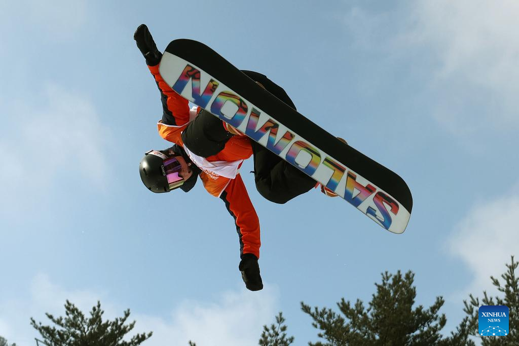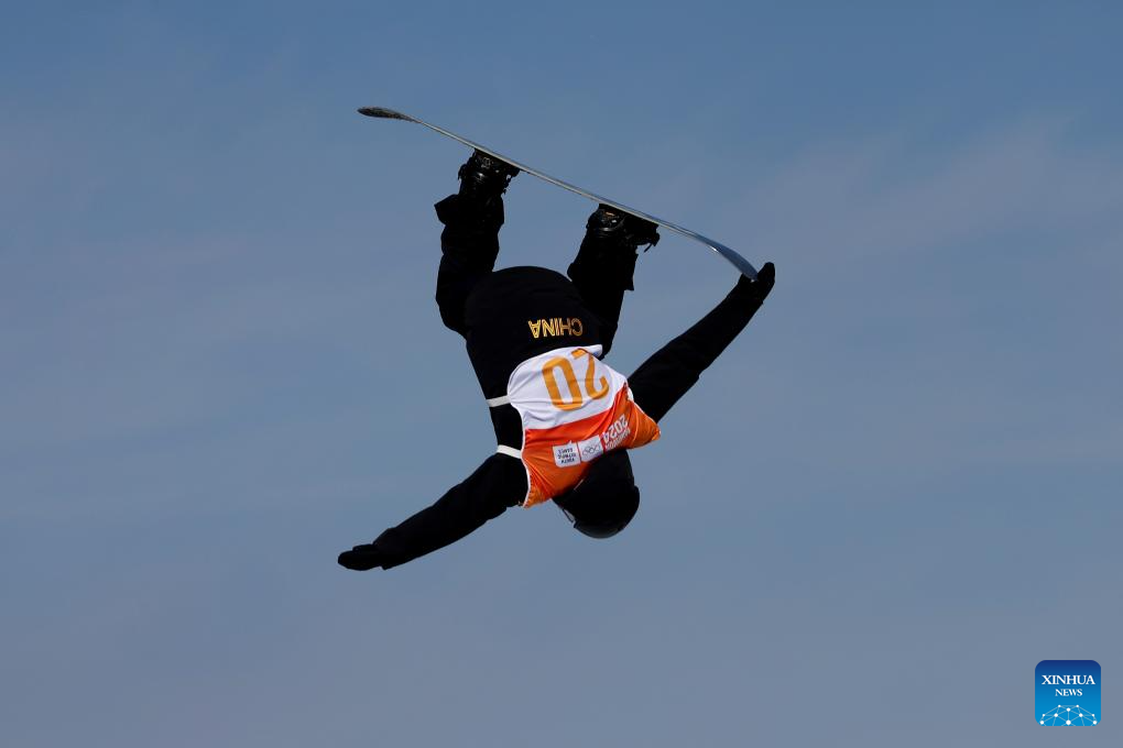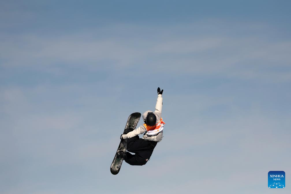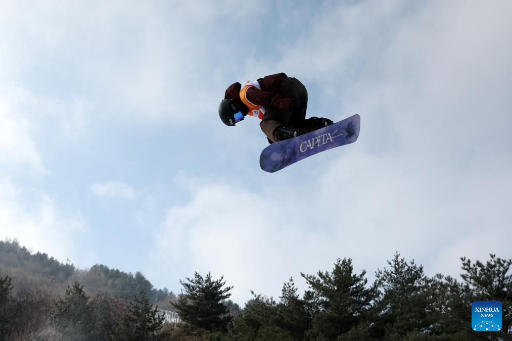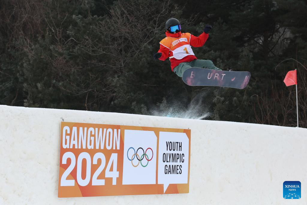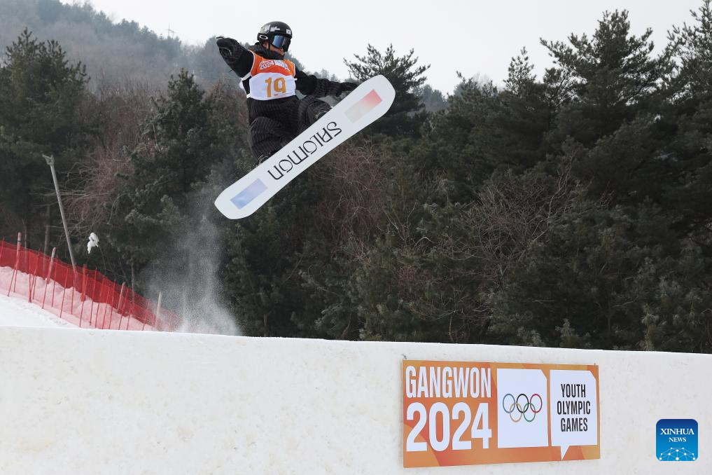 Ge Chunyu of China competes during the Men's Big Air qualification of snowboard event at the Gangwon 2024 Winter Youth Olympic Games in Hoengseong, South Korea, Jan. 27, 2024. (Xinhua/Li Ming)