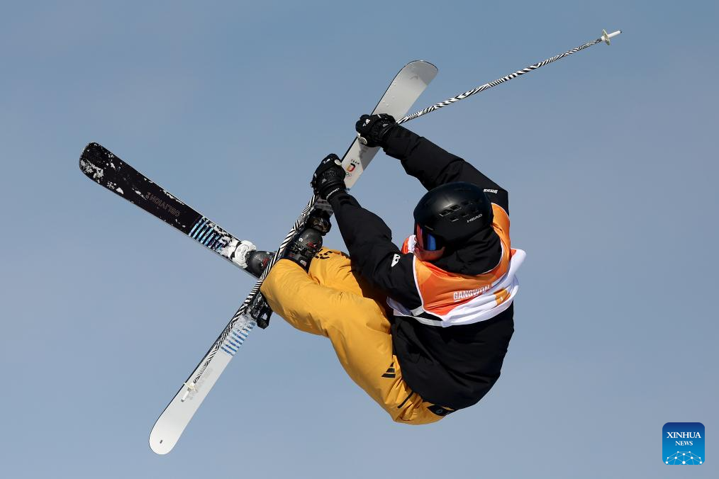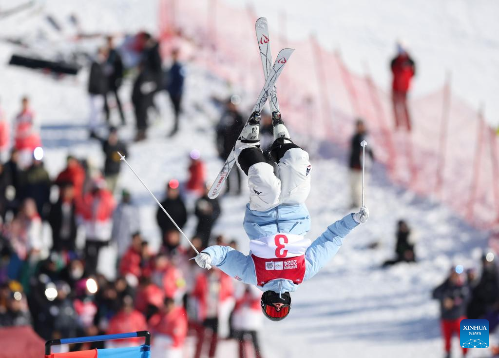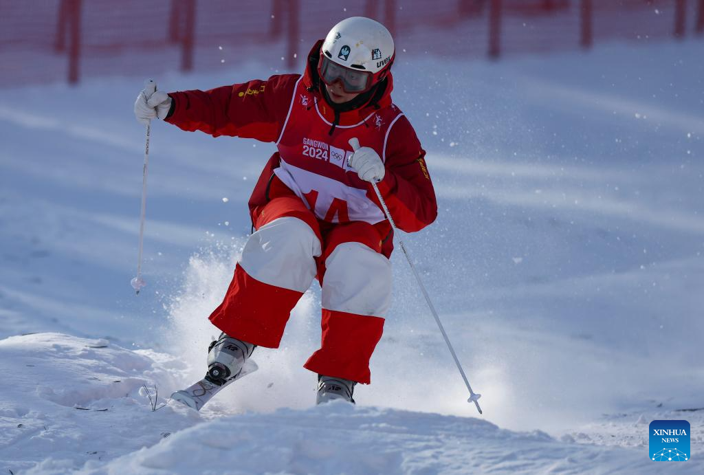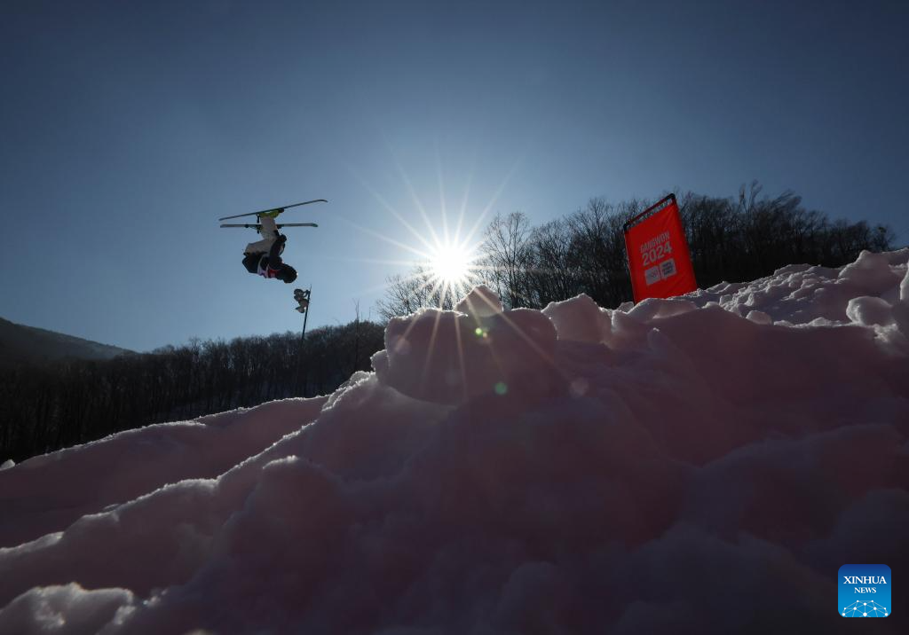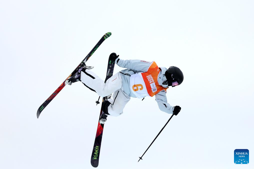 Long Hao of China competes during the Men's Dual Moguls of Freestyle Skiing event at the Gangwon 2024 Winter Youth Olympic Games in Jeongseon, South Korea, Jan. 27, 2024. (Xinhua/Hu Huhu)