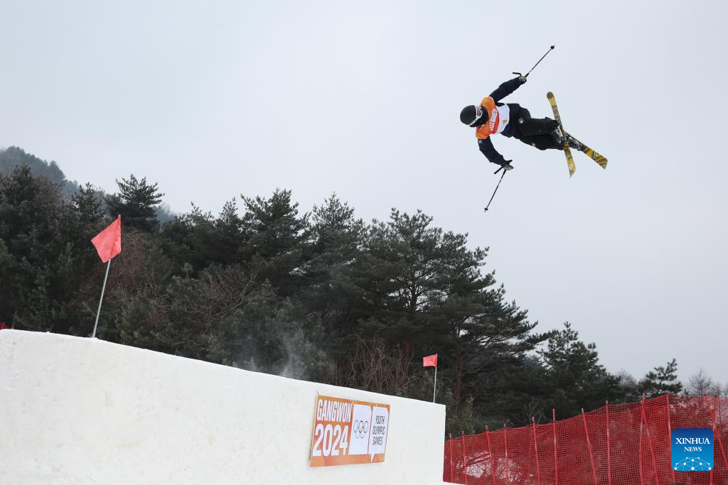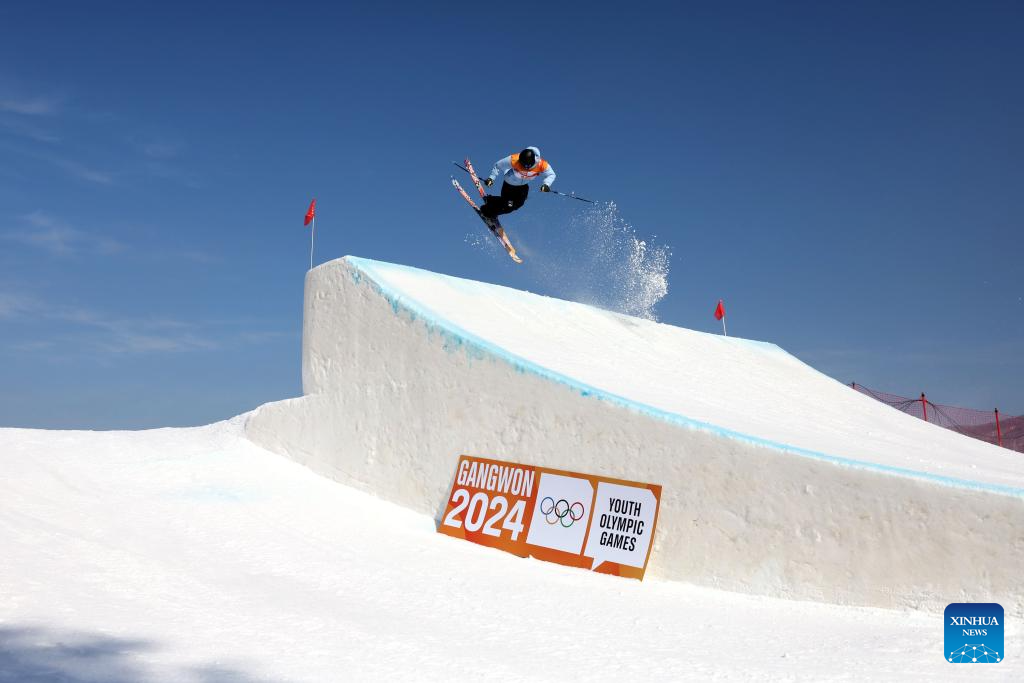 Olly Nicholls of Japan competes during the Men's Big Air qualification of freestyle skiing event at the Gangwon 2024 Winter Youth Olympic Games in Hoengseong, South Korea, Jan. 27, 2024. (Xinhua/Li Ming)