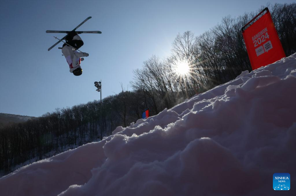 Gabrielle Dinn of Canada competes during the Women's Big Air qualification of freestyle skiing event at the Gangwon 2024 Winter Youth Olympic Games in Hoengseong, South Korea, Jan. 27, 2024. (Xinhua/Li Ming)