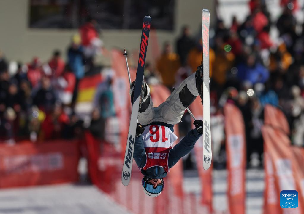 Porter Huff of the United States competes during the Men's Dual Moguls of Freestyle Skiing event at the Gangwon 2024 Winter Youth Olympic Games in Jeongseon, South Korea, Jan. 27, 2024. (Xinhua/Hu Huhu)