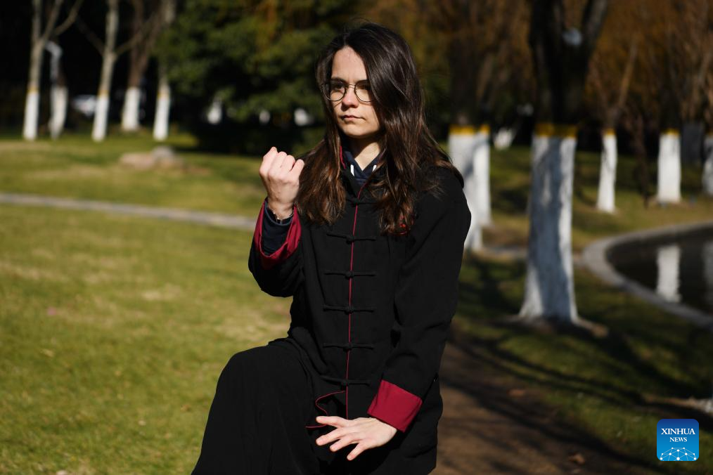 Deborah Bret practices Taichi by a lake in Hefei City, east China's Anhui Province, Jan. 23, 2024. Deborah Bret, a 21-year-old student from Lyon, France, majors in clinical medicine at Anhui Medical University.