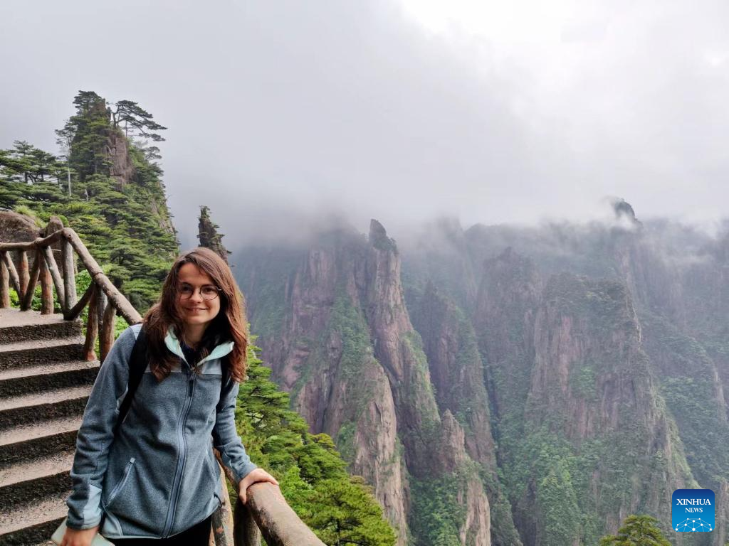 Deborah Bret visits Huangshan Mountain scenic area in Huangshan City, east China's Anhui Province, May 27, 2023. Deborah Bret, a 21-year-old student from Lyon, France, majors in clinical medicine at Anhui Medical University.