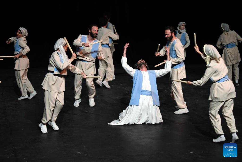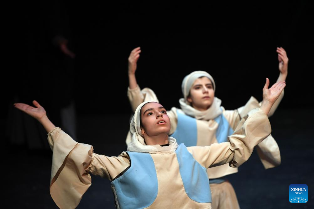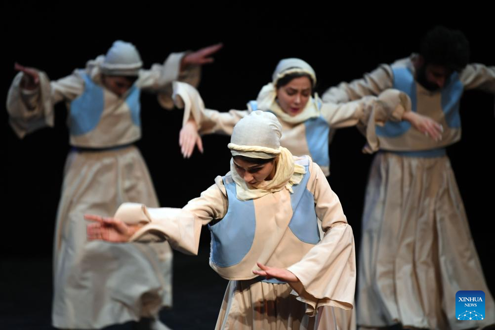 Performers dance during the 42nd Fadjr International Theater Festival in Tehran, Iran, Jan. 29, 2024. (Xinhua/Shadati)