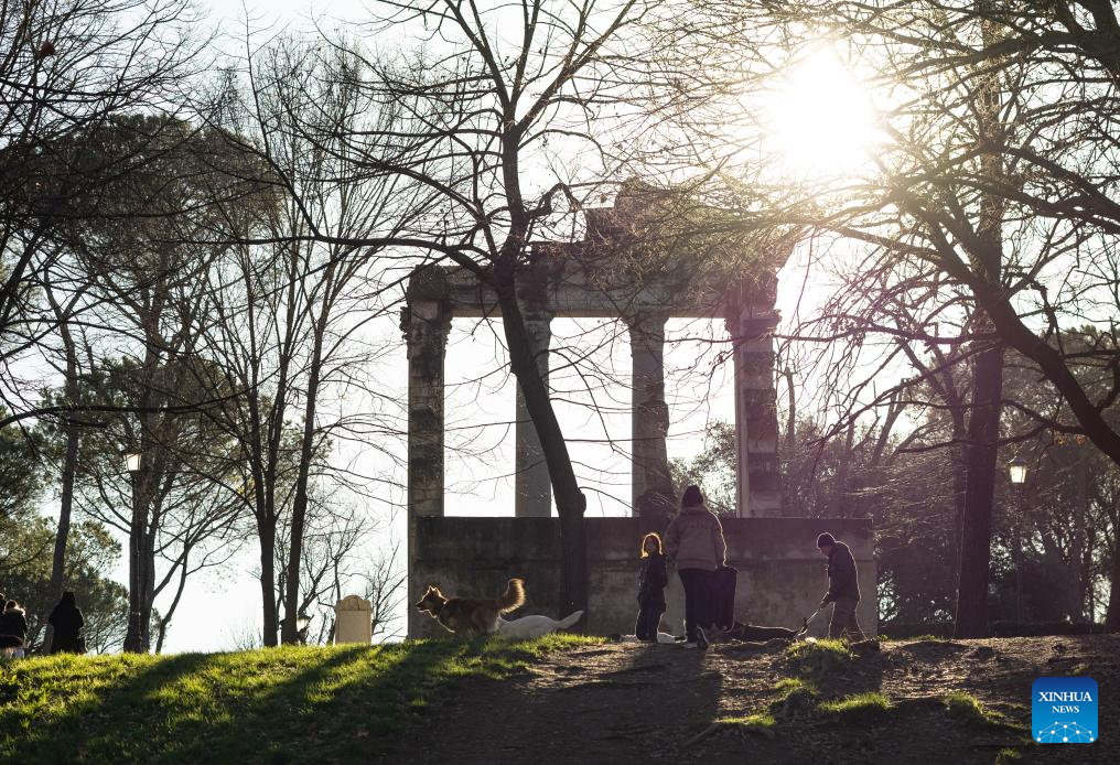 People walk at Villa Borghese in Rome, Italy, Jan. 23, 2024. (Xinhua/Li Jing)