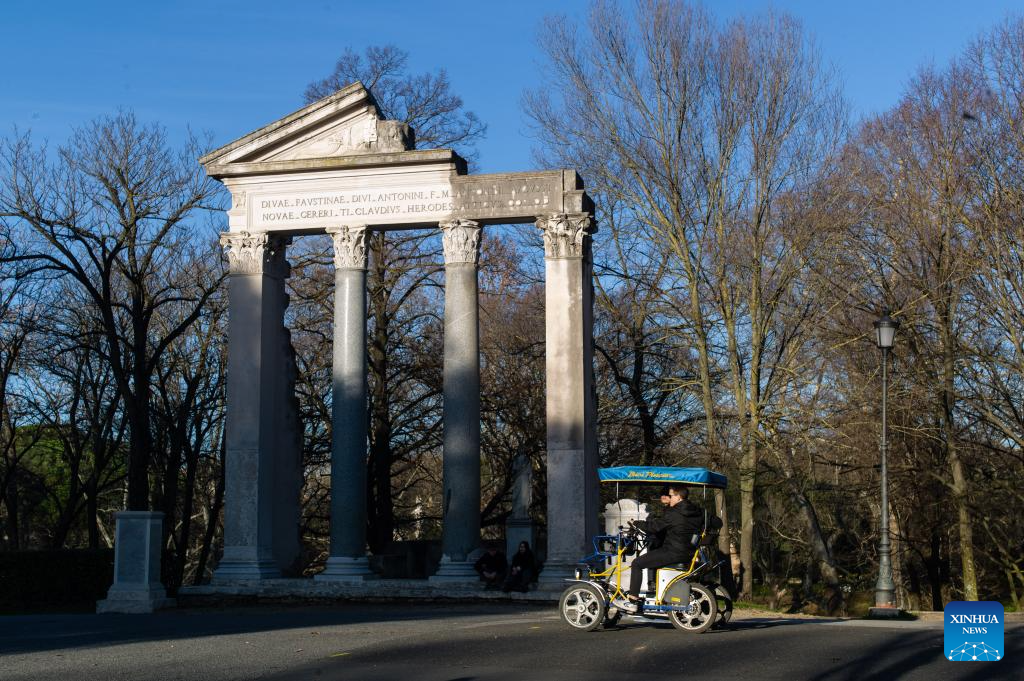 Tourists take a tour at Villa Borghese in Rome, Italy, Jan. 23, 2024. (Xinhua/Li Jing)